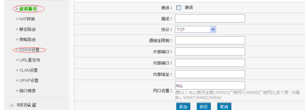 4.如果還要在外網(wǎng)看監(jiān)控,則要在路由器上配置虛擬服務(wù)器;如果沒(méi)有固定IP地址,還要在路由器上設(shè)置DDNS。