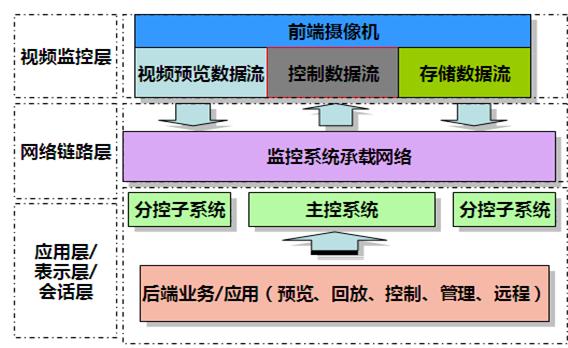網(wǎng)絡(luò)高清視頻監(jiān)控系統(tǒng)從系統(tǒng)構(gòu)造上能夠分為視頻監(jiān)控層、網(wǎng)絡(luò)鏈路層、監(jiān)控管理業(yè)務(wù)接口層三個(gè)層次。