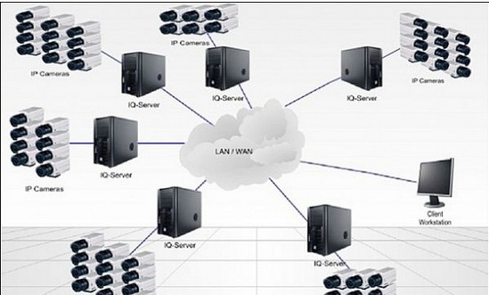所有影像都流到一個中央點,利用一到多臺服務器接收數據
